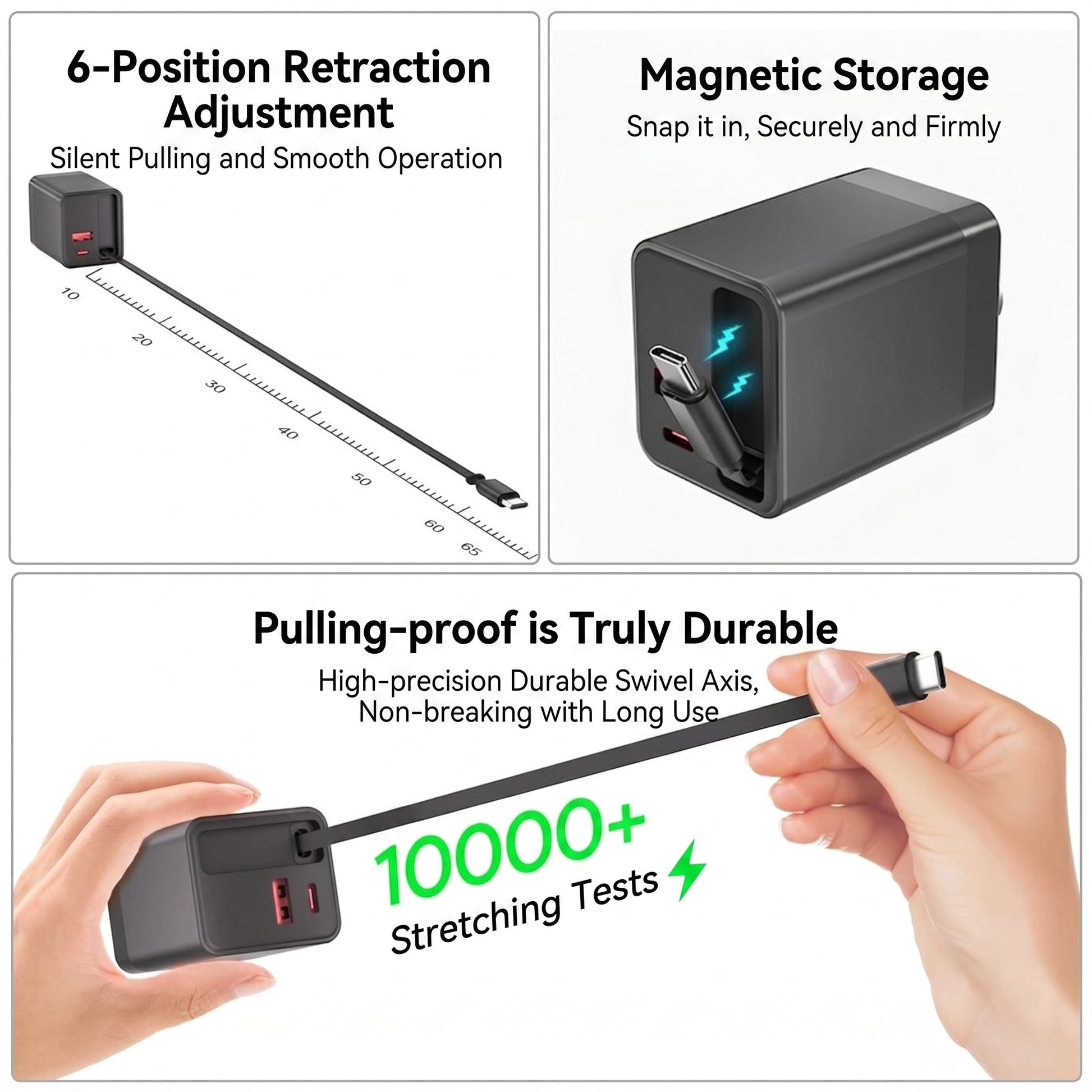 Safety Feature: Short-circuit protection ensures safe and worry-free operation. Retractable Cable: The retractable cable design allows for easy storage and optimal mobility.