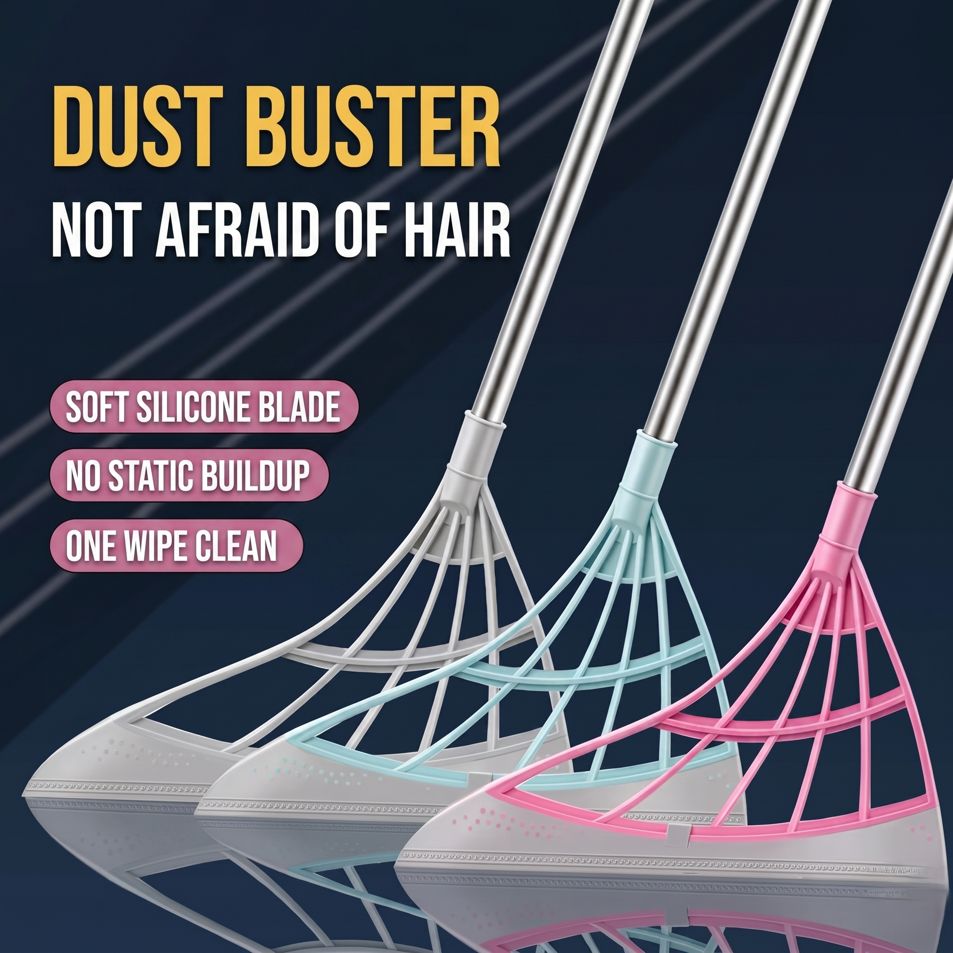 【Zero-Tangling Anti-Hair Design】 Say goodbye to traditional bristled brooms. The soft silicone blade glides over floors, collecting pet hair, human hair, and fine dust without any entanglement. Perfect for homes with pets!